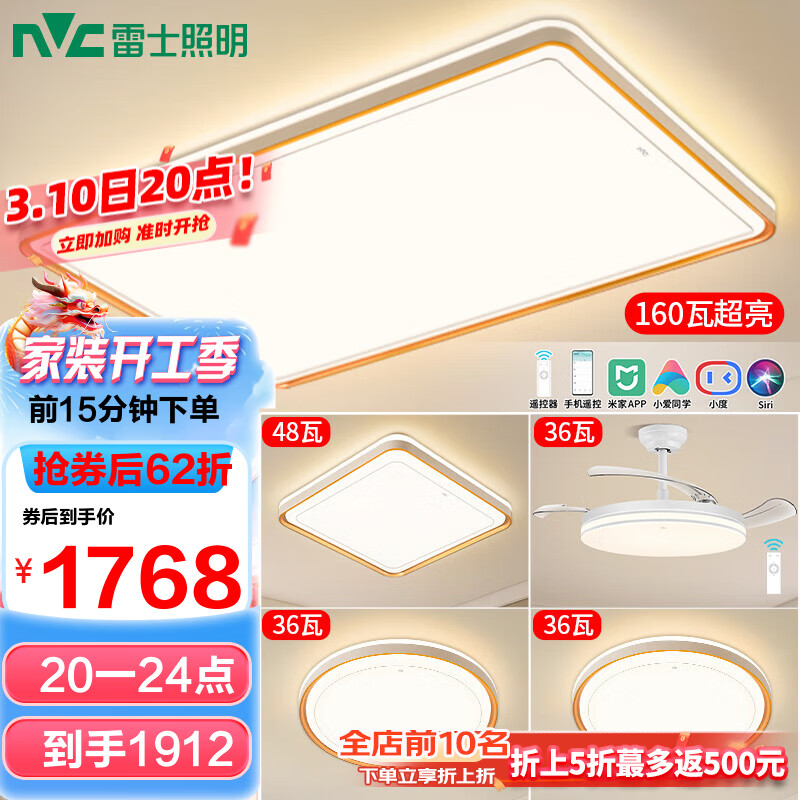 雷士(NVC)LED吸顶灯简约大尺寸户型客厅书房卧室灯具大瓦数AI智控灯饰悦梦C价格:2748.00元!