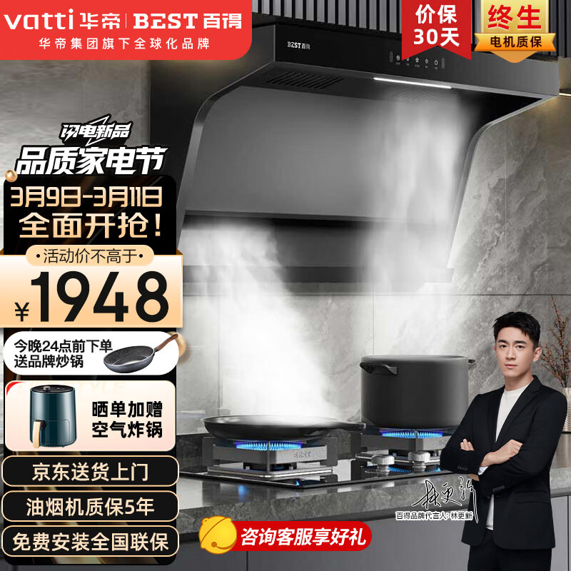 百得(BEST)华帝出品 顶侧双吸油烟机燃气灶具套装 23立方大吸力挥手感应自动洗 E600烟灶套装(液化气)价格:2148.00元!