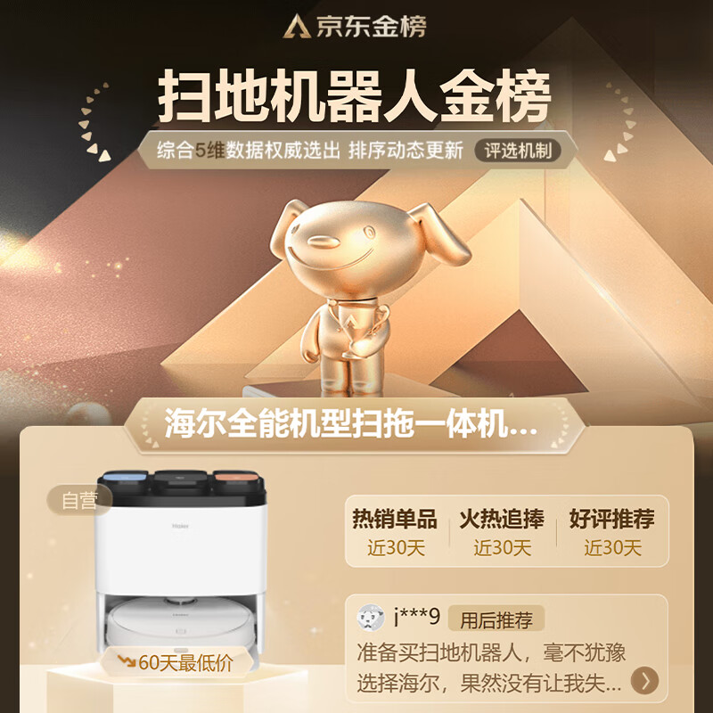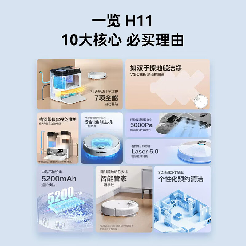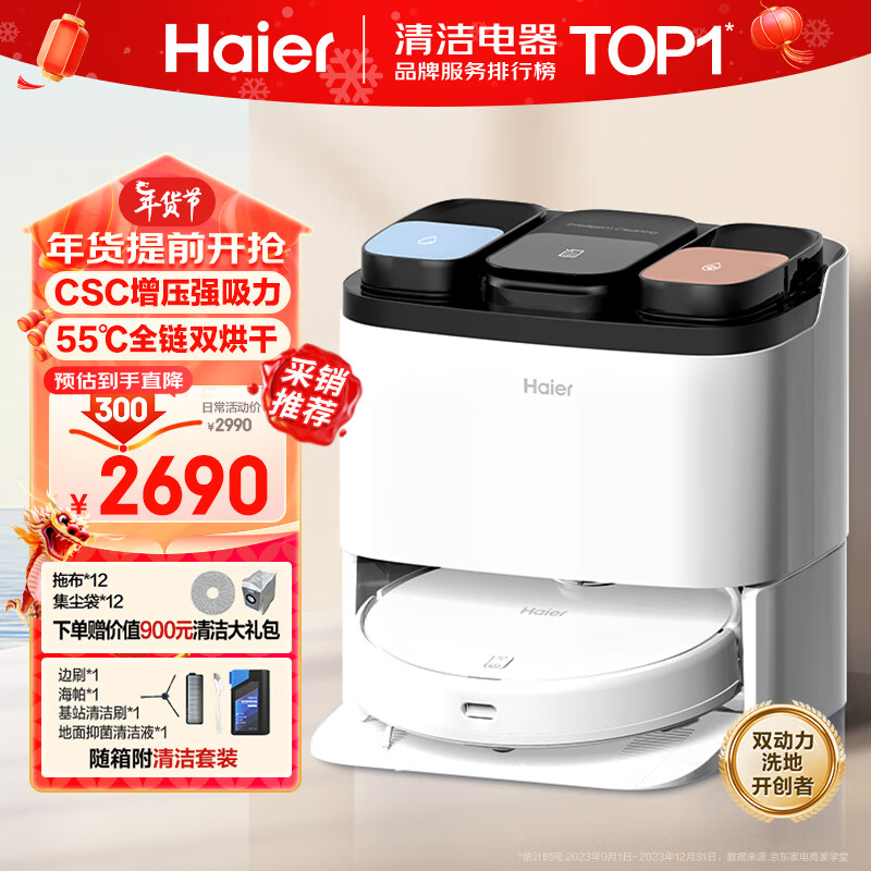 海尔Haier扫地机器人扫拖一体自清洁免洗拖地机器人智能全自动家用擦地机小金刚H11+价格:2690.00元!