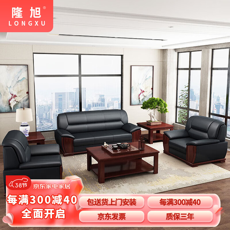 隆旭 办公家具办公沙发茶几组合办公室简约会客接待沙发商务皮沙发 牛皮3+1+1+长茶几价格:5250.00元!