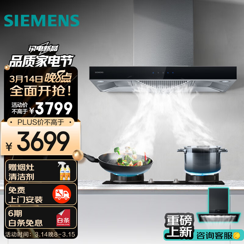西门子(SIEMENS)抽油烟机灶具套装20m3/min 欧式油烟机 4.5kW燃气灶955W+GA23MP烟灶套装天然气价格:3699.00元!