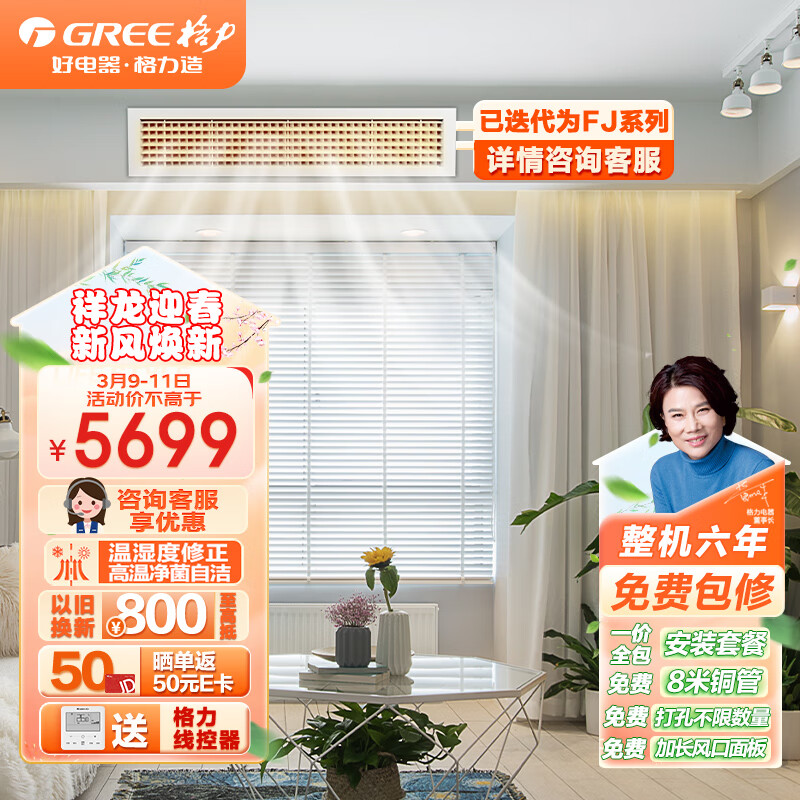 格力(GREE)中央空调 风管机一拖一 大1匹家用嵌入式空调 1级能效 FGR2.6Pd/C3Nh-N1 京仓派送(一价全包)价格:5699.00元!