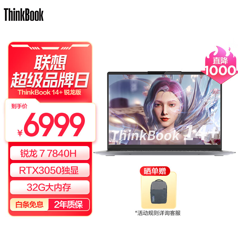 ThinkPad 联想ThinkBook 14+ 锐龙版标压处理器 轻薄商务办公笔记本电脑 R7-7840H 32G 1T 独显0DCD价格:7999.00元!