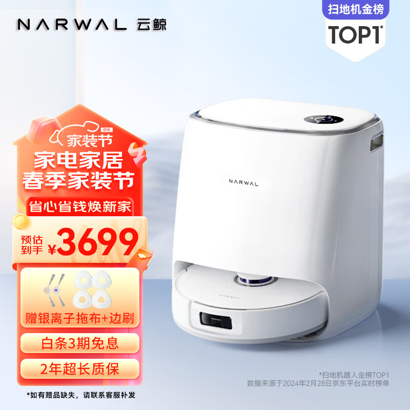 云鲸扫地机器人J4 扫拖洗烘一体自动清洗集尘全自动 洗地机洗拖一体 吸尘器拖地机擦地机器人 水箱版价格:3699.00元!