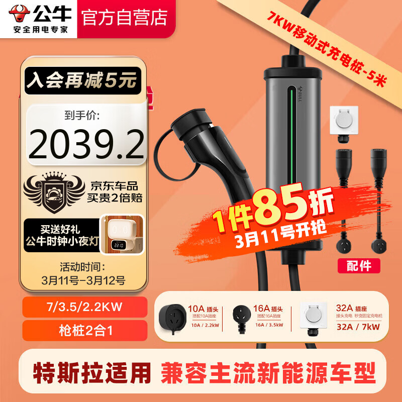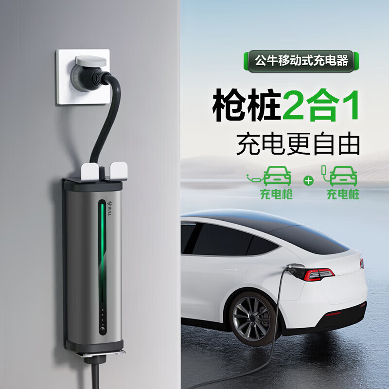 公牛(BULL)便携式充电桩充电枪随车充适用小米su7理想MEGA比亚迪极氪等7KW/3.5KW枪桩2合1固定便携两用 5M价格:2399.00元!