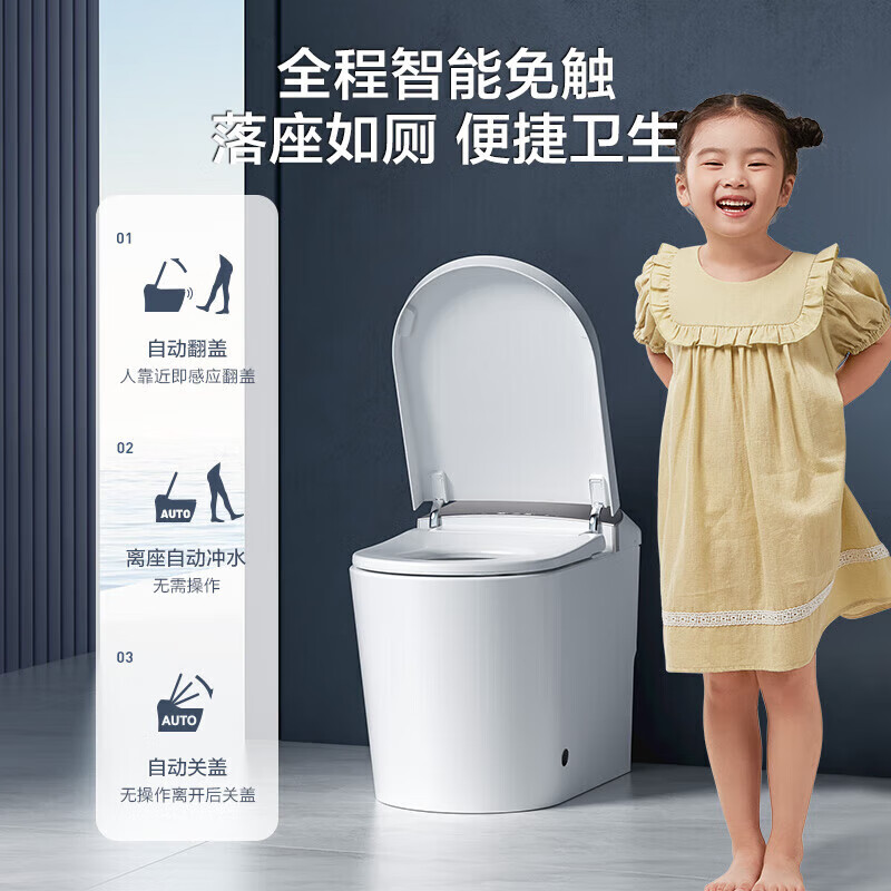 功能:暖风烘干,自动除臭,按摩清洗,臀部清洁,座圈加热,喷嘴自洁,女性清洗,喷嘴移动清洗,净化水质,水温调节,水压调节,感应翻盖,风温调节,坐温调节,感应翻圈,柔和夜灯