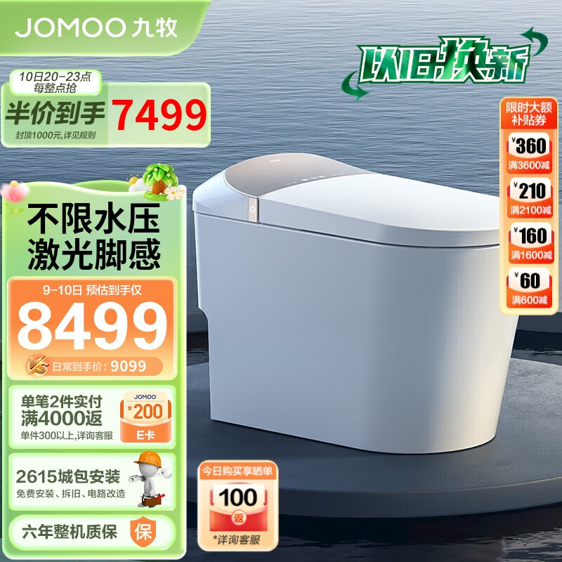 九牧(JOMOO)智能马桶一体机带水箱泡沫盾自动翻盖智能坐便器ZS900-400坑距价格:8499.00元!