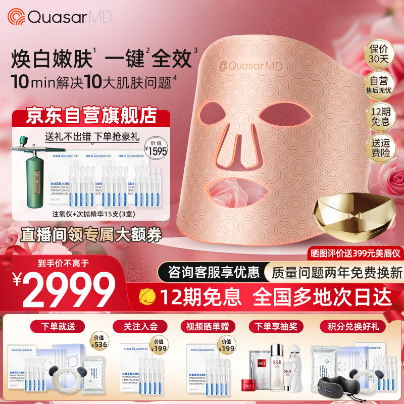 科施佳QuasarMD面罩美容仪提拉紧致 光疗嫩肤面膜仪大排灯修护亮肤家用脸部淡纹除皱情人节礼物送女生价格:2999.00元!