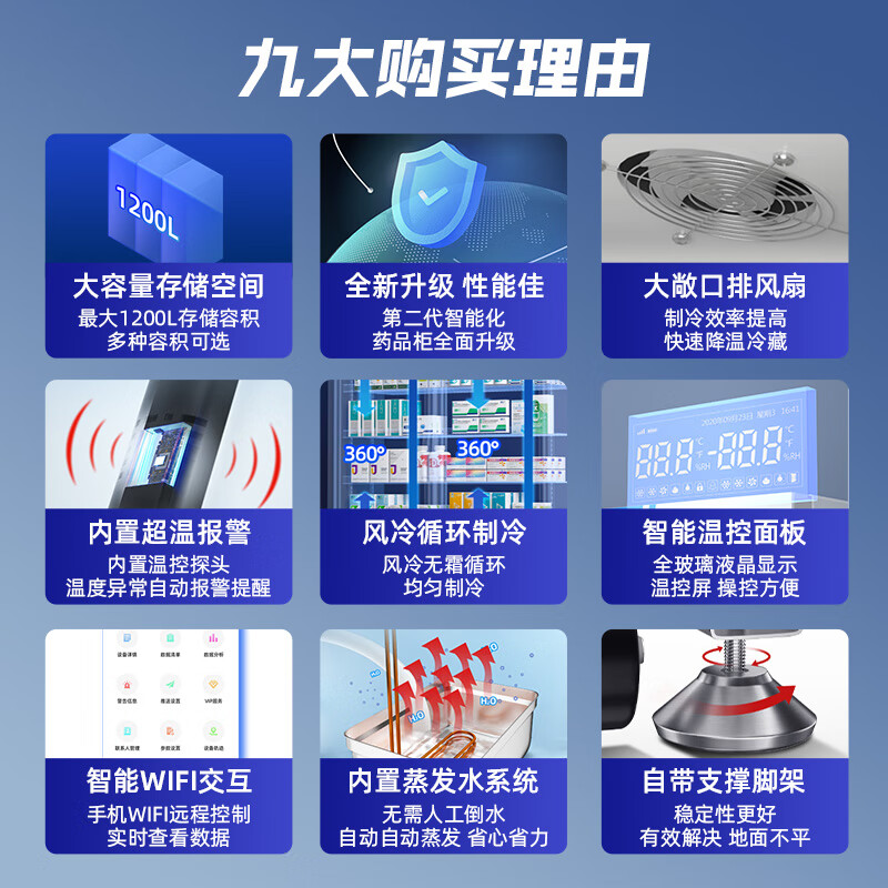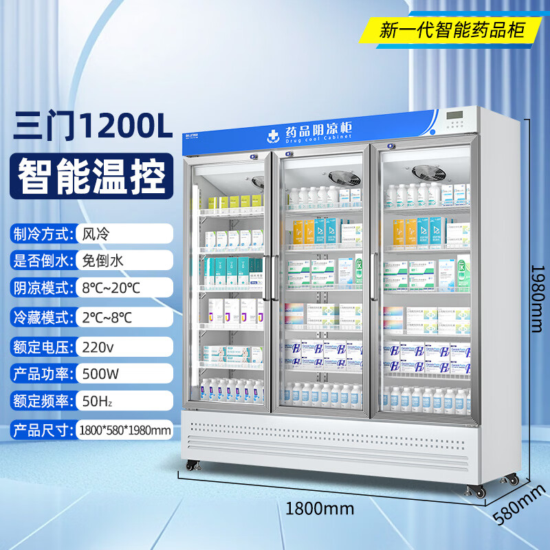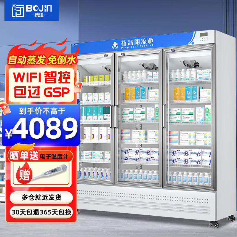 博津药品阴凉柜1200Lwifi智控三门展示柜冷藏柜gsp认证医院冰箱药店诊所立式冰柜医药柜风冷价格:4089.00元!