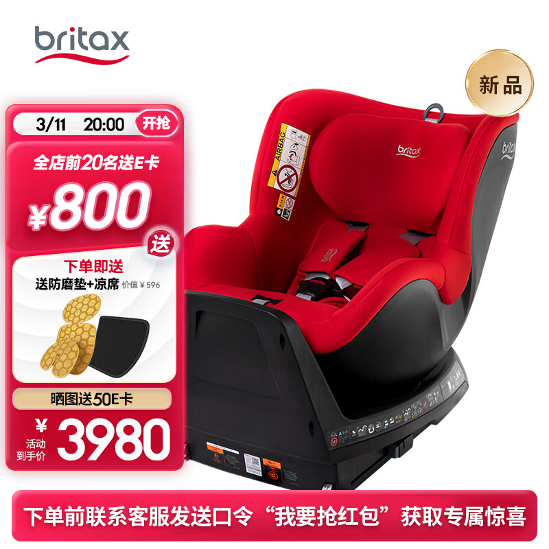 宝得适(BRITAX)宝宝儿童座椅0-4岁isize认证正反安装双面骑士plus火辣红价格:3980.00元!