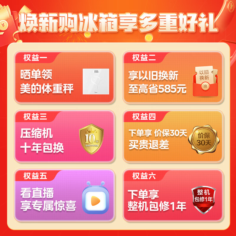 5、冰箱空问很大,外观时尚,还可以用手机控制,抗菌保鲜功能丰富,一级能效省电小能手,家里的大家电都买的美的,质量信得过!推荐!