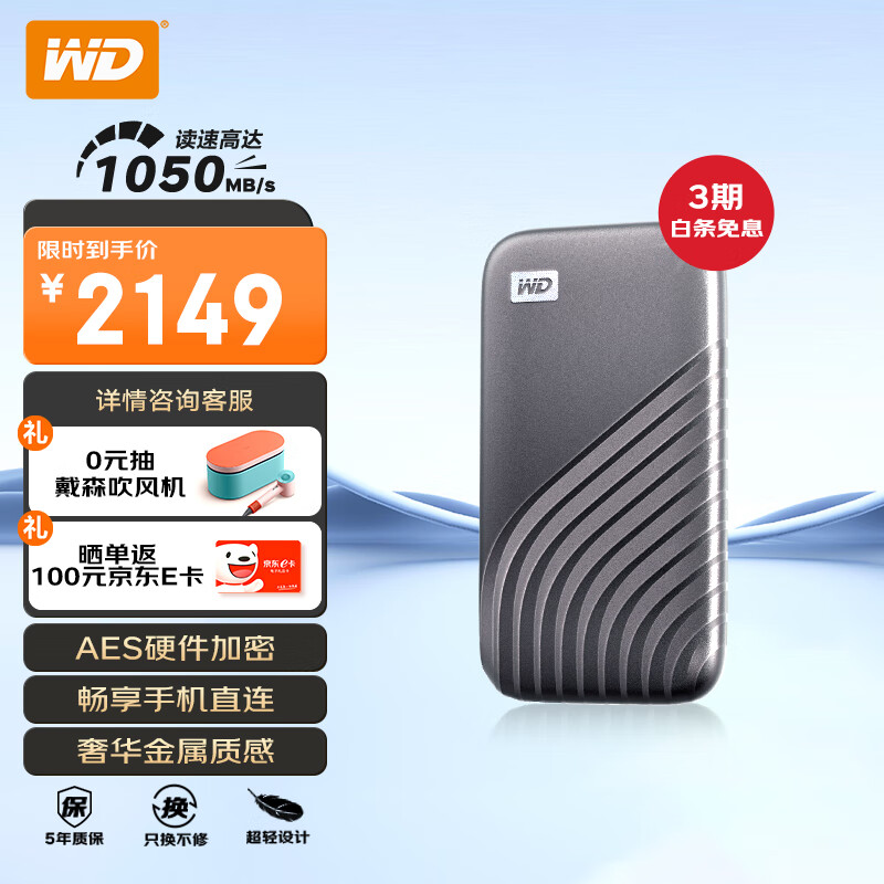 西部数据(WD)4TB NVMe 移动固态硬盘(PSSD)My Passport随行SSD type-c接口 1050MB/s 手机笔记本外置外接价格:2149.00元!