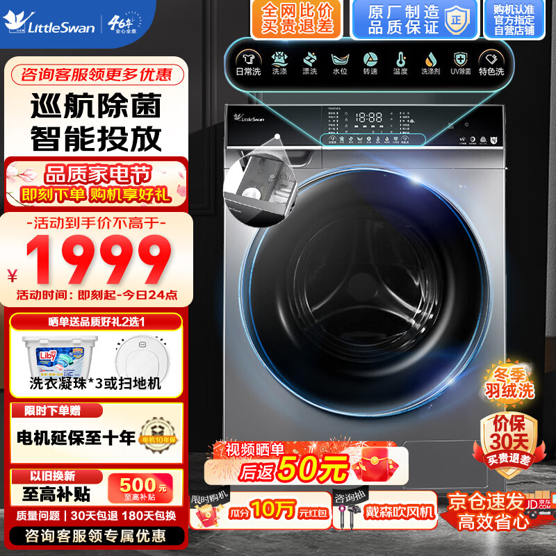 小天鹅(LittleSwan)滚筒洗衣机全自动 10KG洗脱一体变频 全时巡航除菌 远程智控 智能投放 以旧换新TG100VC6价格:1939.00元!