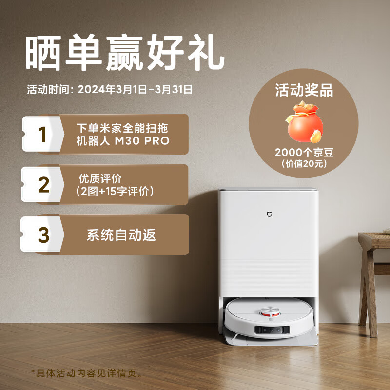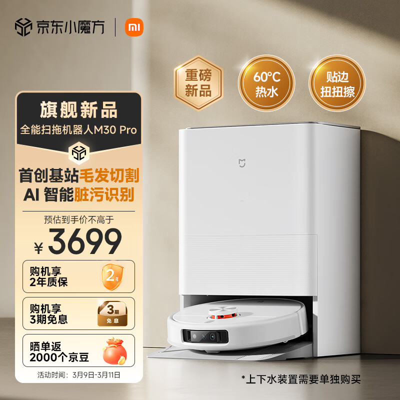 米家小米全能扫拖机器人M30Pro扫拖一体自动清洗扫地机器人洗地机基站毛发切割防缠绕价格:3699.00元!