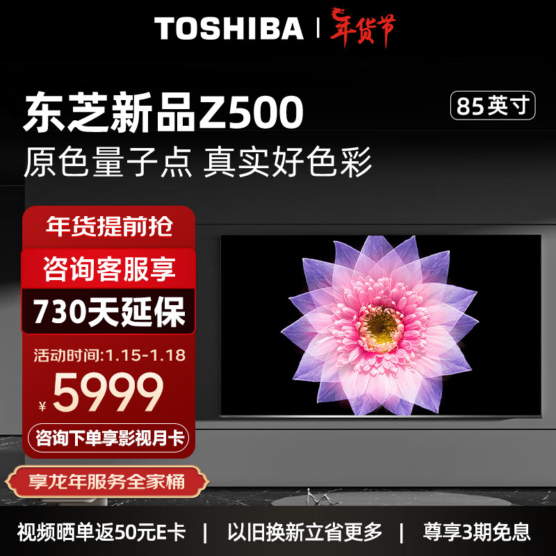 东芝电视85Z500MF 85英寸量子点120Hz高刷客厅巨幕 4K超清低蓝光 液晶平板游戏电视机4+64GB以旧换新价格:5999.00元!
