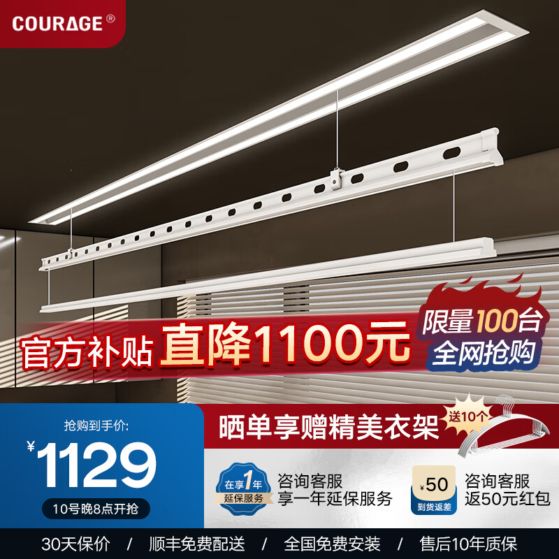 卡瑞琪(COURAGE)电动晾衣架隐形阳台家用隐藏式晾衣架升降薄晒衣架 米家2.7+被杆价格:2229.00元!