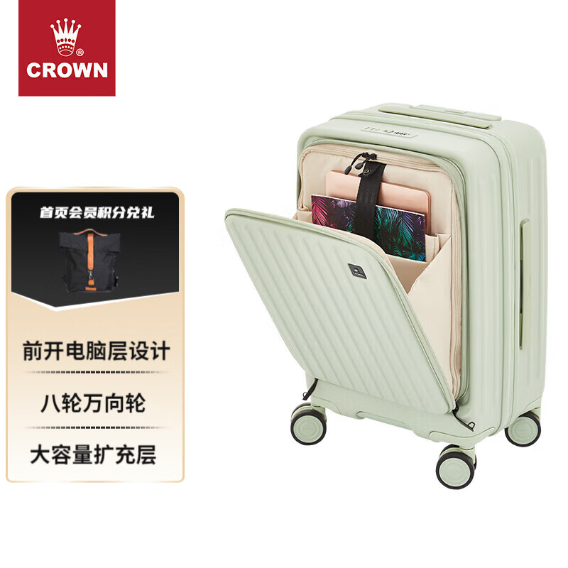 皇冠(CROWN)前开盖行李箱小型时尚扩展层加大容量拉杆箱旅行箱5020-20-薄荷绿价格:859.00元!