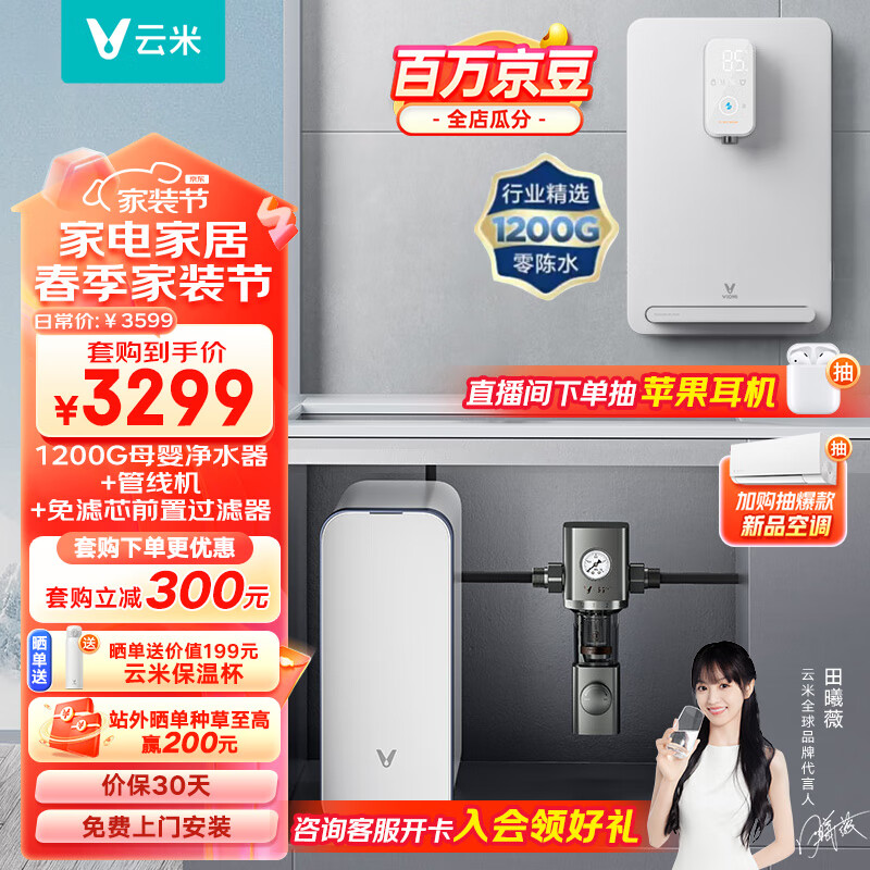 云米(VIOMI)Super Y 1200G全屋净水套装净水器+管线机MG2-B+前置过滤器VF4-A三件套家用直饮加热净水器净水机价格:3599.00元!