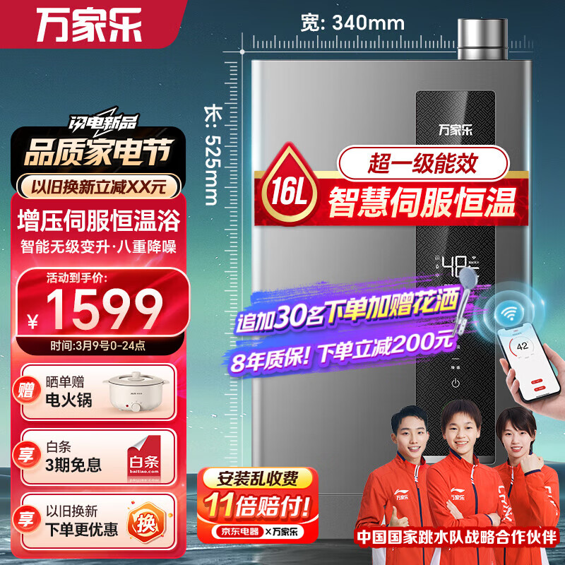 万家乐(Macro)RU5燃气热水器一级能效智慧伺服恒温 八重降噪静音舱双增大水量直流变频智能变升WIFI远控电辅防冻 16L 一级节能省气价格:1799.00元!