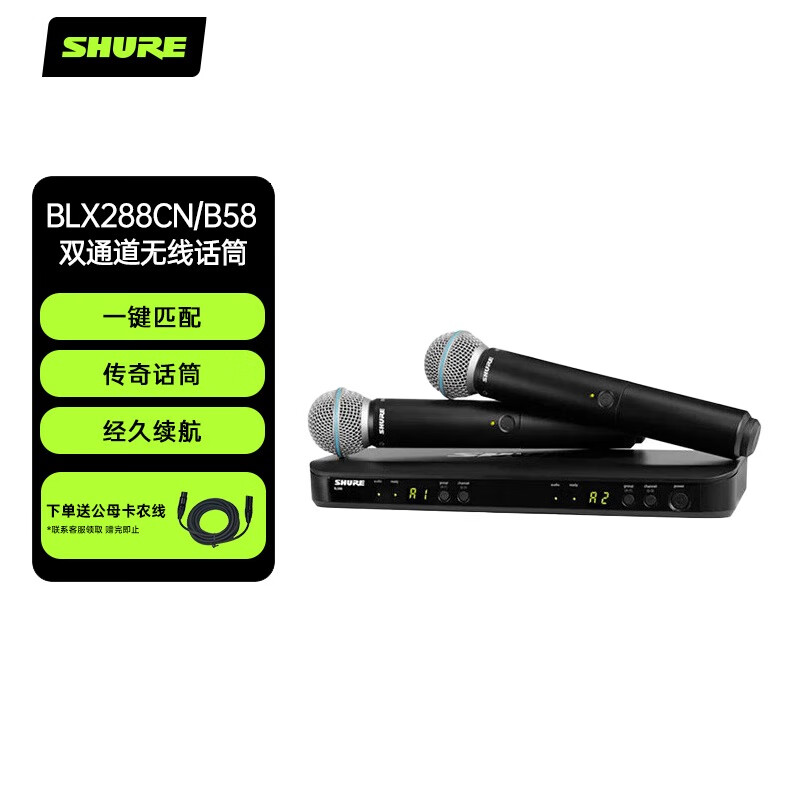 SHURE舒尔 Shure BLX288CN/B58-L19无线话筒手持麦克风专业演出会议价格:6308.00元!