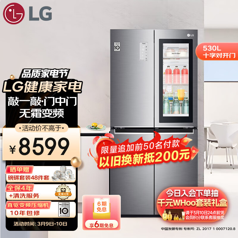 LG敲一敲系列 530升超大容量十字对开门 门中门冰箱 金属面板 无霜变频 制冰盒 以旧换新 F521S71价格:8599.00元!