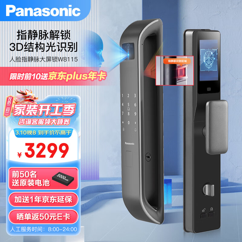 松下(Panasonic)指静脉锁3D人脸识别可视猫眼室内大屏智能锁指纹锁 EMW8115GH灰色价格:3299.00元!