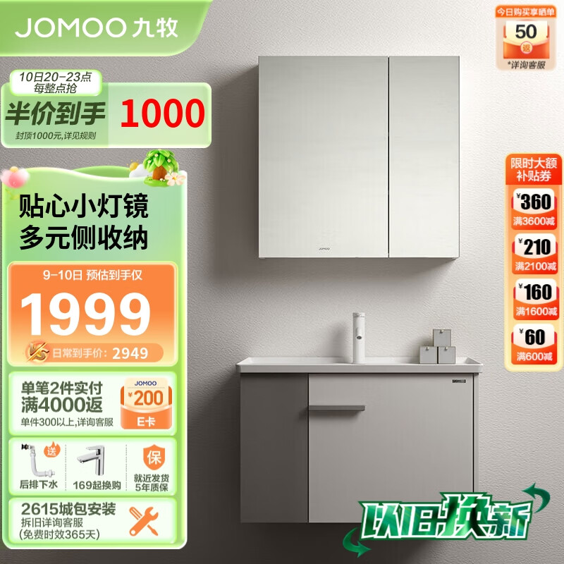 九牧(JOMOO)浴室柜陶瓷一体盆奶油风洗脸盆柜组合左侧收纳80cm A2717-147H-1价格:2499.00元!
