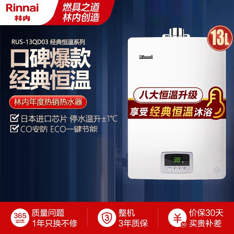 林内(Rinnai)13升 经典恒温 防冻 燃气热水器 天然气 RUS-13QD03(JSQ26-D03)家电*价格:3199.00元!