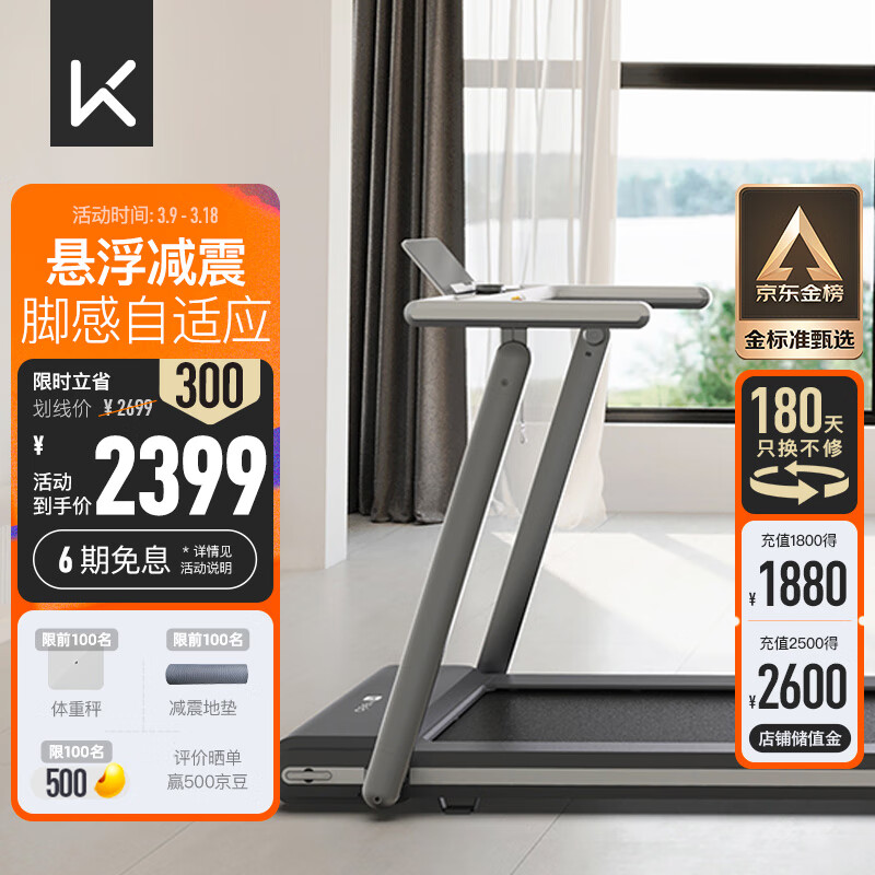 Keep跑步机K3舒适版智能健身器材 家庭用跑步机折叠减震白 K0003A价格:2399.00元!