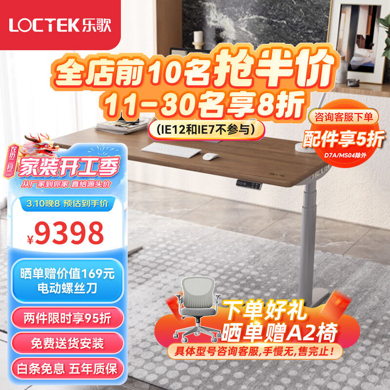 乐歌电动升降桌电脑桌站立办公学习桌E6-HD/1.8m实木黑胡桃木色套装价格:10418.00元!