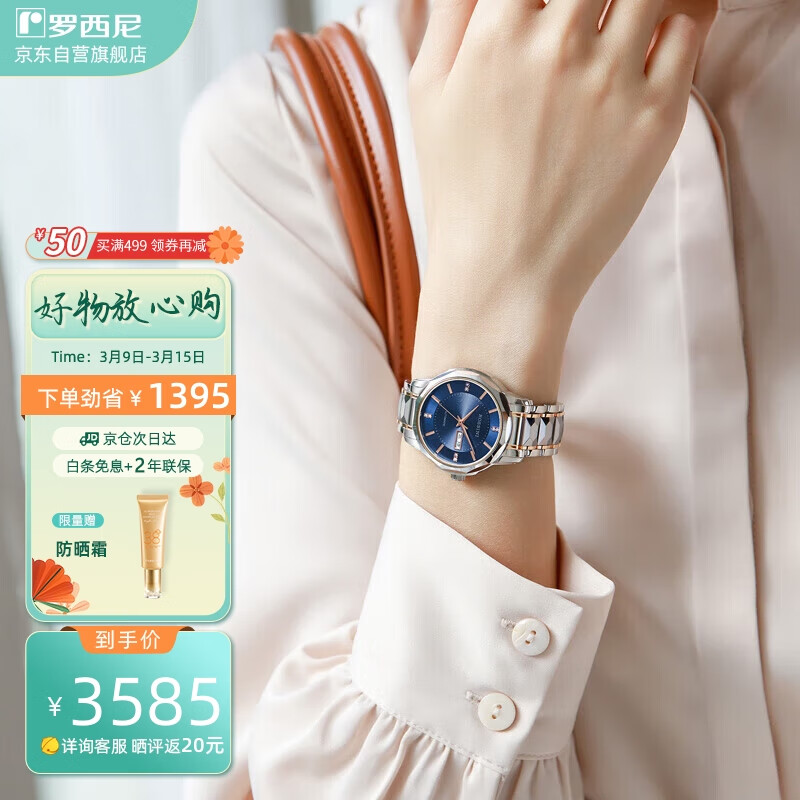 罗西尼(ROSSINI)手表女自动机械表蓝盘钨钢带38妇女节礼物女友国表商务防水 6890价格:3975.00元!