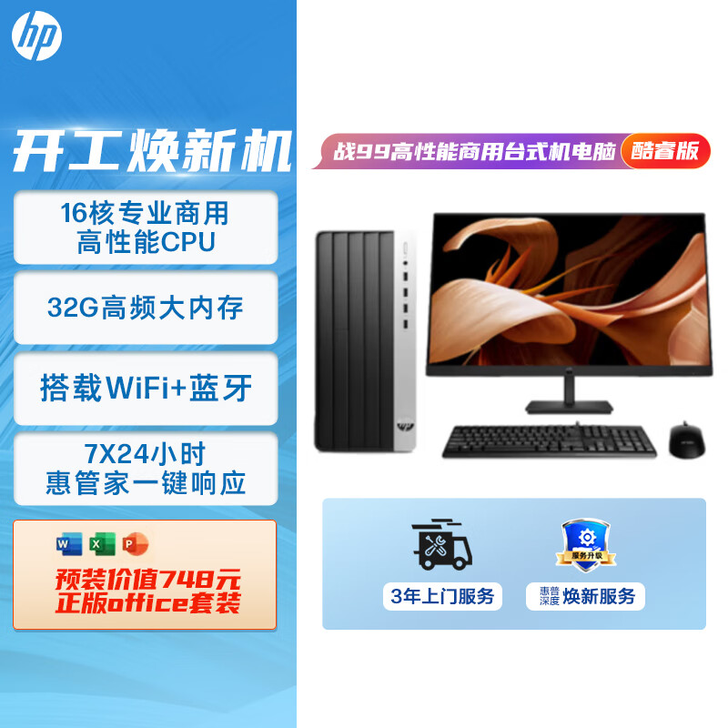 惠普(HP)战99 台式电脑主机(酷睿13代i7-13700 32G 1T+2T)27英寸大屏显示器 WiFi蓝牙16核高性能CPU价格:6999.00元!