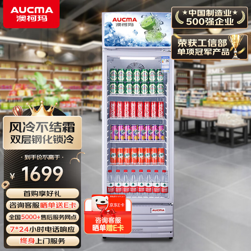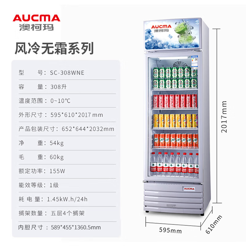 澳柯玛(AUCMA)308L商用展示柜 风冷无霜冷藏柜 立式冰箱陈列柜 超市啤酒水果饮料柜 单门保鲜柜 SC-308WNE价格:1699.00元!