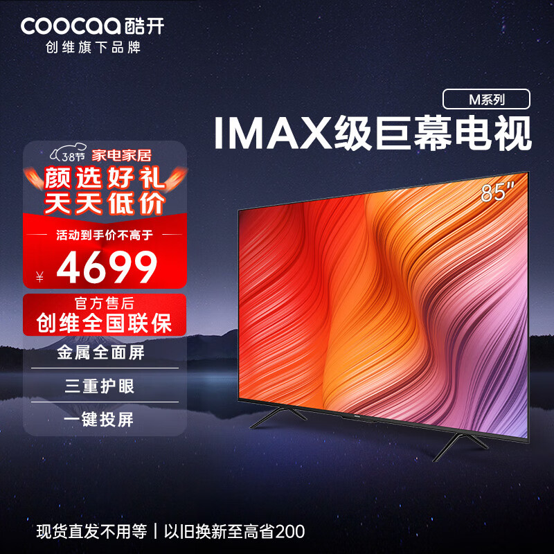 酷开(coocaa)创维电视M85 85英寸游戏电视 120HZ高刷 HDMI2.1 4K超高清 3+32GB 智慧屏 客厅电视 85P31价格:4399.00元!