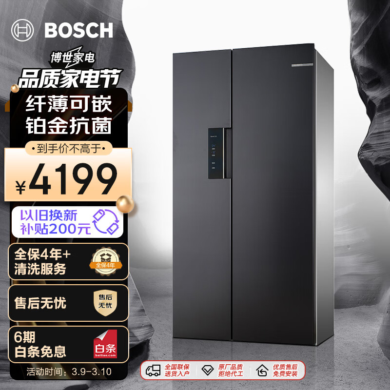 博世(BOSCH)【灰阶纤薄】502升超薄可嵌入式变频大容量风冷无霜对开双开门家用冰箱KXN50A97TI 以旧换新价格:4599.00元!