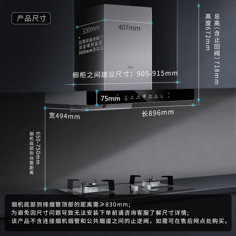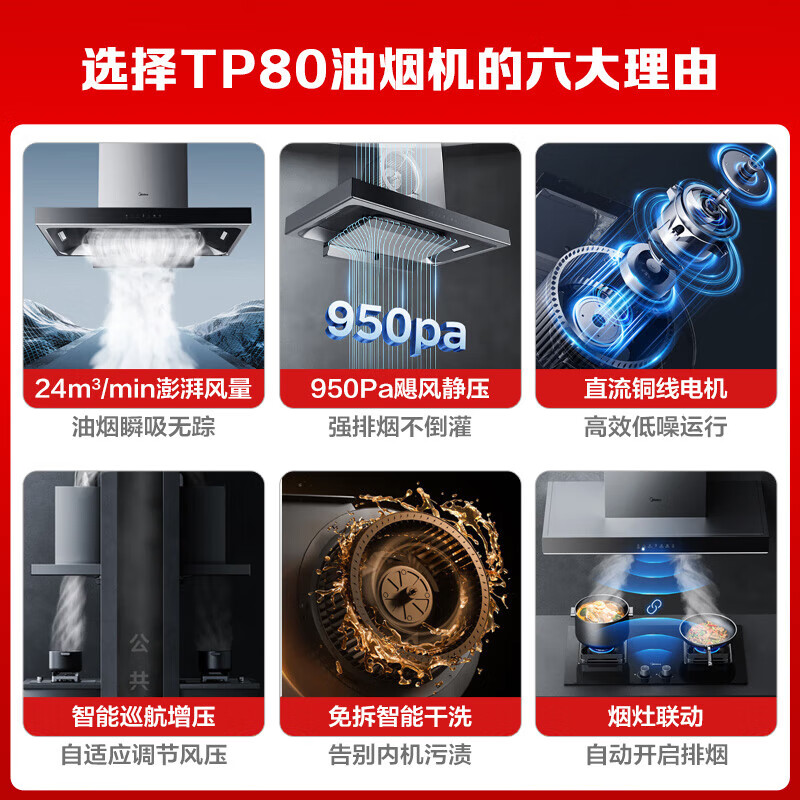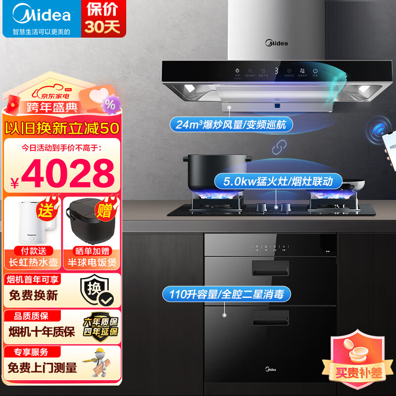 美的(Midea)家用抽油烟机24立方大吸力欧式顶吸油烟机燃气灶具消毒柜厨房三件套装天然气TP80+523+90Q15SPro价格:4028.00元!