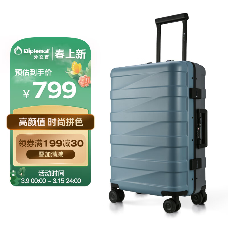 Diplomat外交官时尚拼色拉杆箱行李箱男女密码箱登机旅行箱TC-26032价格:1029.00元!