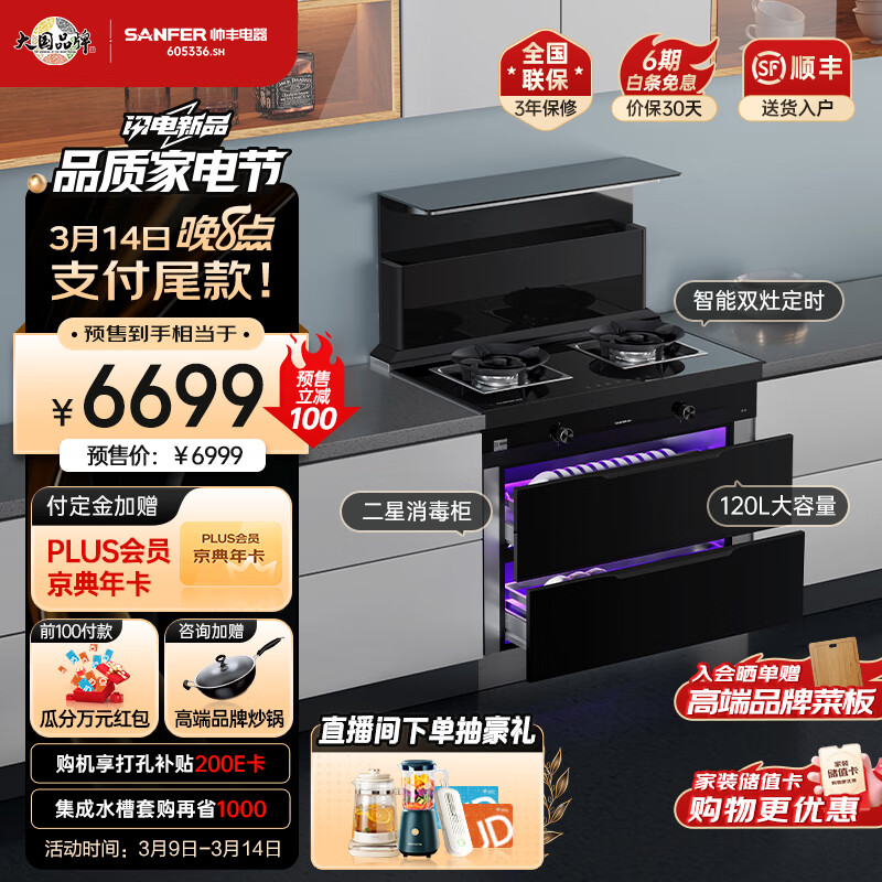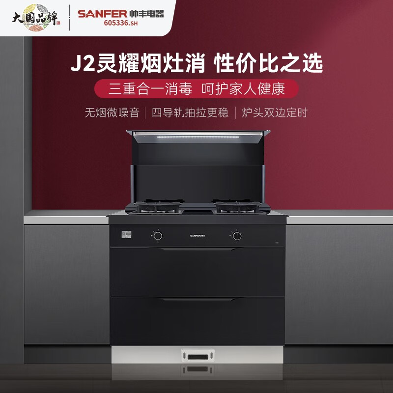 帅丰(SANFER)J2-3B-90 集成灶消毒柜集成灶 油烟机 集成一体燃气灶 侧吸大吸力天然气价格:6999.00元!