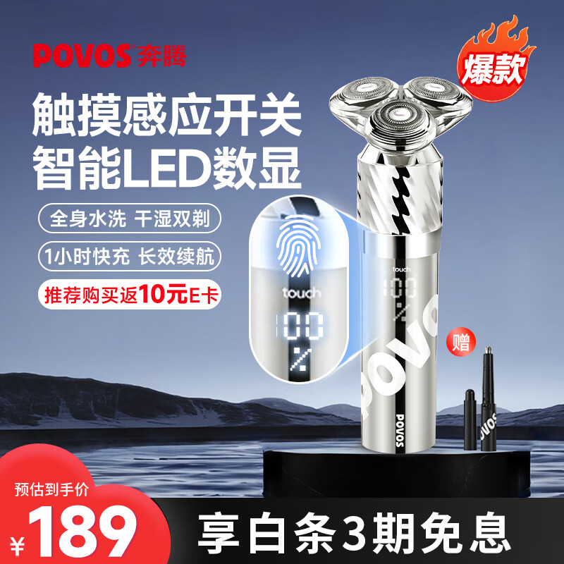 奔腾(POVOS)电动剃须刀男士智能感应刮胡须刀须刨 全身水洗快充PQ9800银生日纪念日【送男友送老公送父亲】价格:219.00元!