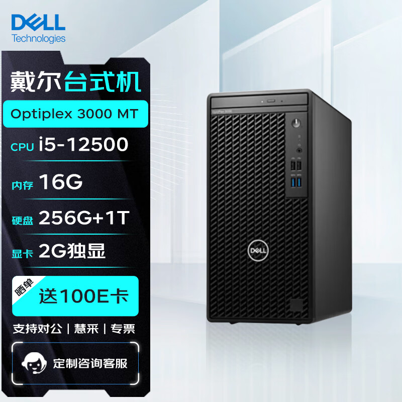 戴尔DELL台式机 Optiplex 3000 MT (3090升级款) 电脑主机(i5-12500/16G/256G+1T/2G独显)定制价格:4066.00元!