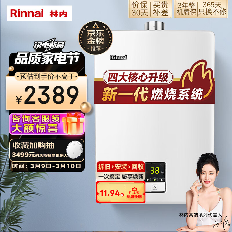 林内(Rinnai)13升恒温 水气双调 ECO节能 防冻 燃气热水器RUS-13QD01(天然气)JSQ26-C01家电价格:2389.00元!