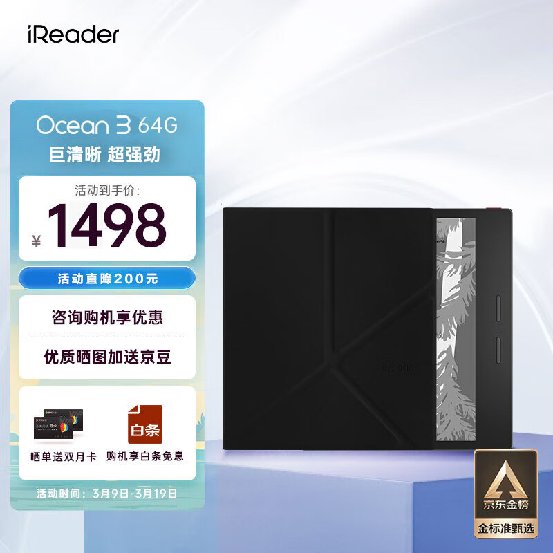 掌阅iReader Ocean3 7英寸电子书阅读器墨水屏电纸书电子纸便携阅读看书学习64GB儒雅黑支架保护套装价格:1498.00元!