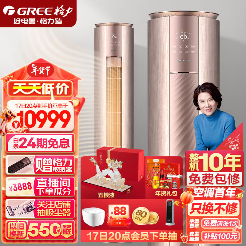格力(GREE)3匹 云铂 紫外线除菌 新1级 自清洁 智能 客厅空调立式空调柜机KFR-72LW/NhDg1BG价格:10999.00元!