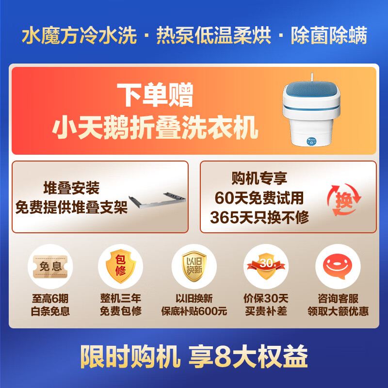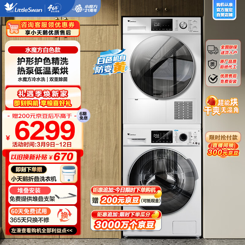 小天鹅(LittleSwan)水魔方洗烘套装 10KG滚筒洗衣机全自动+热泵烘干机【86+35】除菌除螨 白色 TG100VT86WMAD5+35价格:6499.00元!