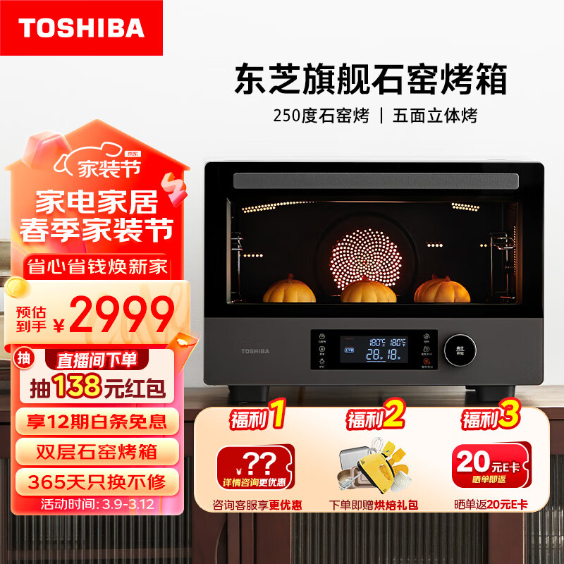 东芝(TOSHIBA)ET-XD7380电烤箱空气炸锅一体机窑炉烤箱家用台式大容量风炉平炉合一石墨烯发酵箱石窑烤烘焙38L价格:2999.00元!