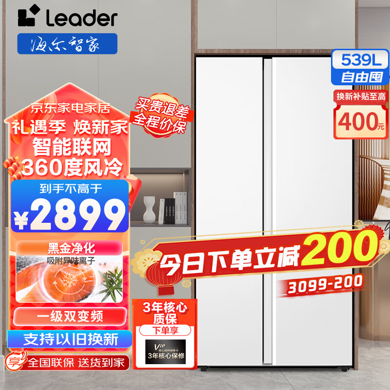 统帅(Leader)海尔出品 539升冰箱 双开门家用 对开门大容量 风冷无霜 一级能效双变频 黑金净化 节能省电价格:2899.00元!