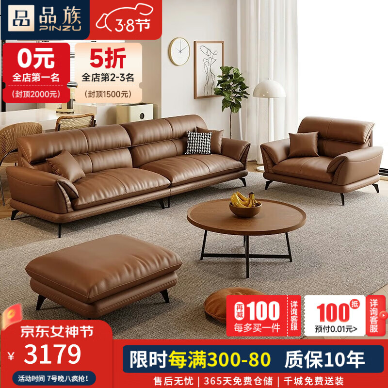品族意式真皮沙发头层牛皮沙发客厅小户型直排沙发PZ-688 2.4米三b价格:4299.00元!