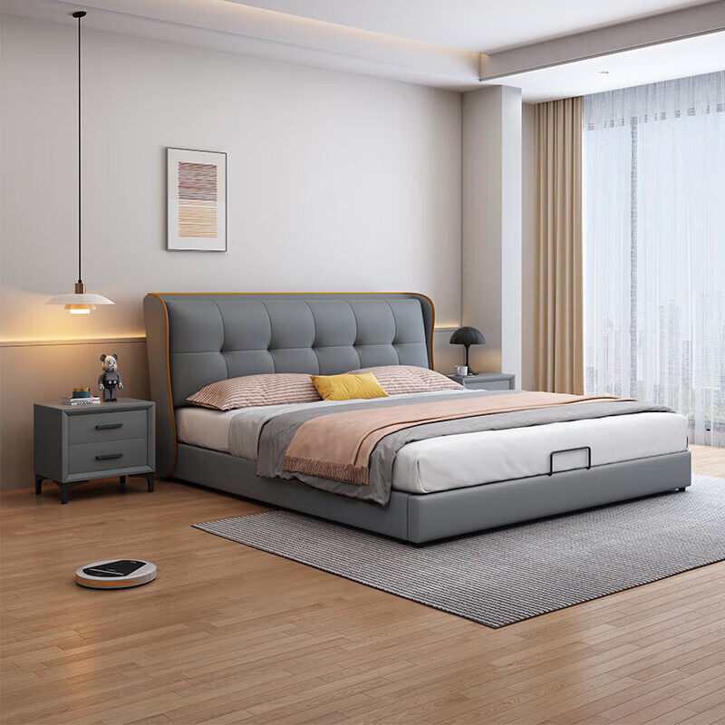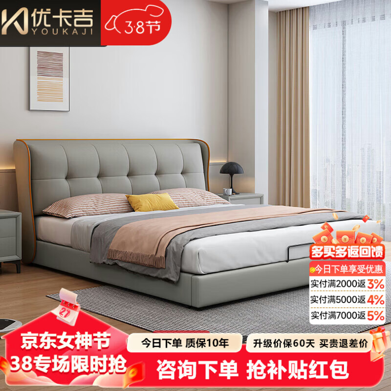优卡吉猫抓皮床现代简约主卧室双人储物软包大床LP-678# 1.8气压床+柜*2价格:2399.00元!