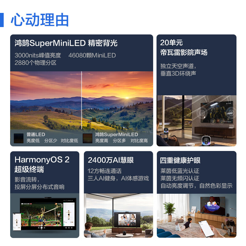 华为智慧屏 V75 Super 超薄屏120Hz高刷 4K超高清液晶智能护眼电视机 MiniLED 以旧换新HD75FREA价格:24999.00元!