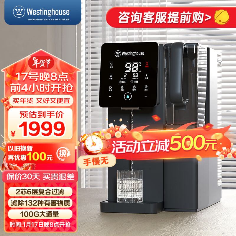 西屋(Westinghouse)台式即热免安装净饮一体机家用 RO反渗透净水器 加热直饮机 桌面即热式饮水机 C5灰色富锶版价格:2699.00元!